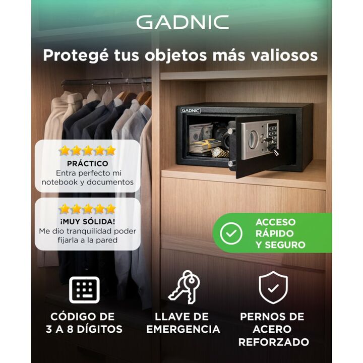 ¡Descubre la Caja de Seguridad Gadnic con apertura electrónica y mantén tus pertenencias seguras y protegidas! Si estás buscando un lugar confiable para almacenar tus objetos de valor, documentos importantes o dinero en efectivo, este cofre es la solución perfecta. Con un diseño elegante y compacto,...