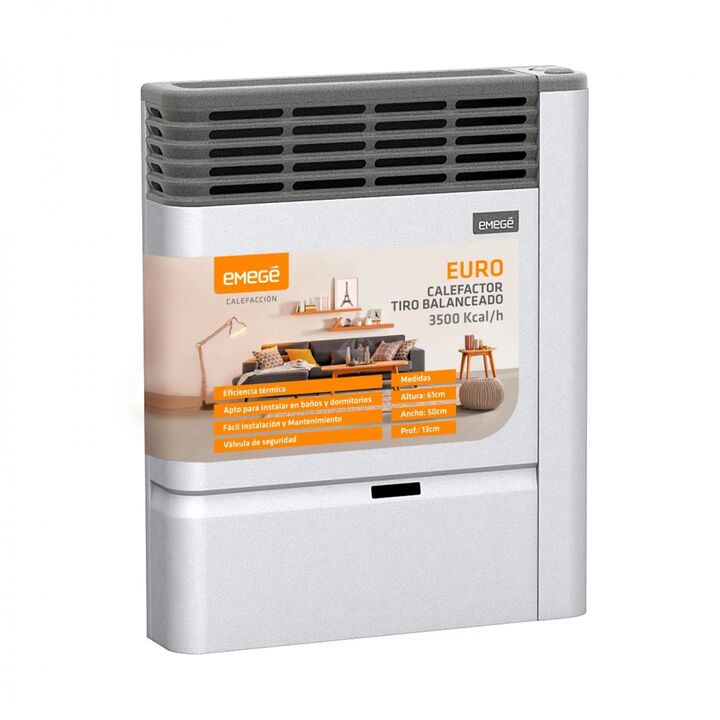 CARACTERÍSTICAS PRINCIPALES: Calefactor Tiro balanceado de 3500 Kcal Salida de calor frontal y superior Frente frio para mayor seguridad No consume el Oxigeno del ambiente Sencillez en el encendido, regulación y mantenimiento Comandos superiores Encendido Piezoelectrico Valvula de seguridad Apto par...