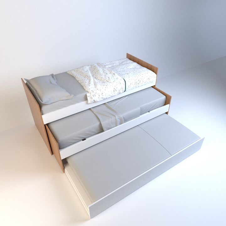 CAMA ALTA Cama 1 plaza Rejilla en melamina Para colchon de 0,80m x 1,90m|2,00m CAMA MEDIA Cama 1 plaza Rejilla en melamina Para colchon de 0,80m x 1,90m Hasta colchon de 0,18m de altura Ruedas para facil deslizamiento CAMA INFERIOR Cama 1 plaza Rejilla en melamina Para colchon de 0,80m x 1,90m Hasta...