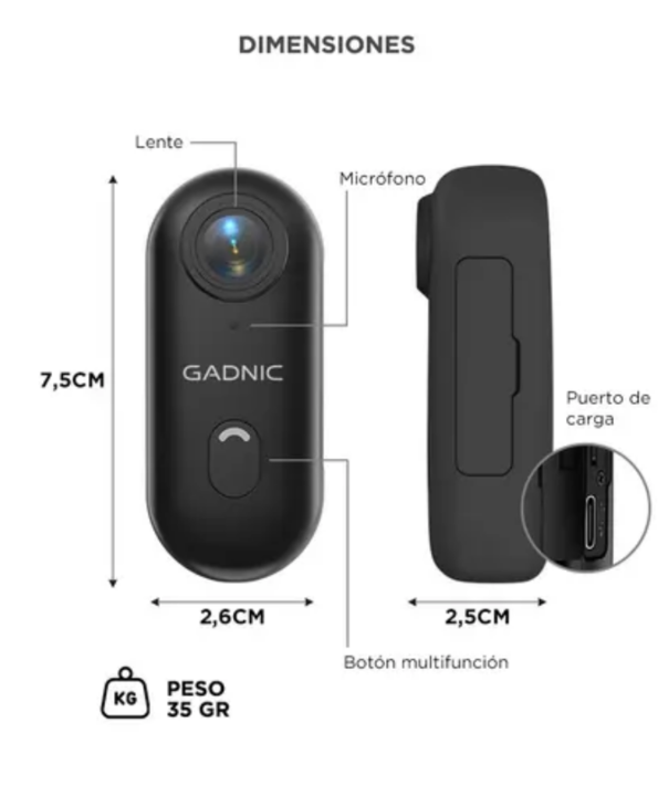 Grabaciones en el tamaño mas compacto La Camara Deportiva Gadnic MCDEP021 ofrece resolucion 4K real con excelente definicion y colores vivos. Su lente de gran angular de 120 grados captura toda la accion, perfecta para deportes, viajes o grabaciones cotidianas. Conectividad total y grabacion continu...