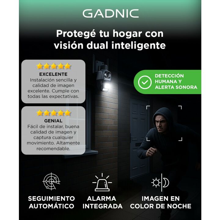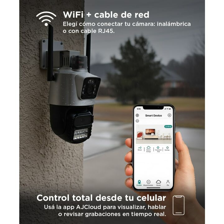 ¡Presentamos la Cámara de Seguridad Dual, una solución de vigilancia avanzada para proteger lo que más importa! Con su lente dual, esta cámara ofrece lo mejor de ambos mundos. Un lente fijo proporciona una vista amplia y constante, mientras que el PTZ te permite controlar el movimiento y el zoom de ...