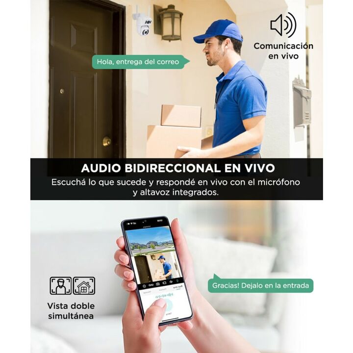 Transforma la seguridad de tu hogar o negocio con nuestra avanzada Cámara de Seguridad. La Detección de Forma Humana y la función de Seguimiento y Captura garantizan que no pase desapercibido ningún movimiento sospechoso. La Cámara también cuenta con Audio Bidireccional, lo que te permite comunicart...