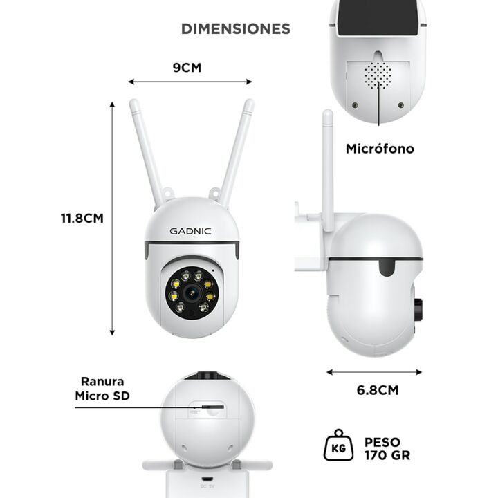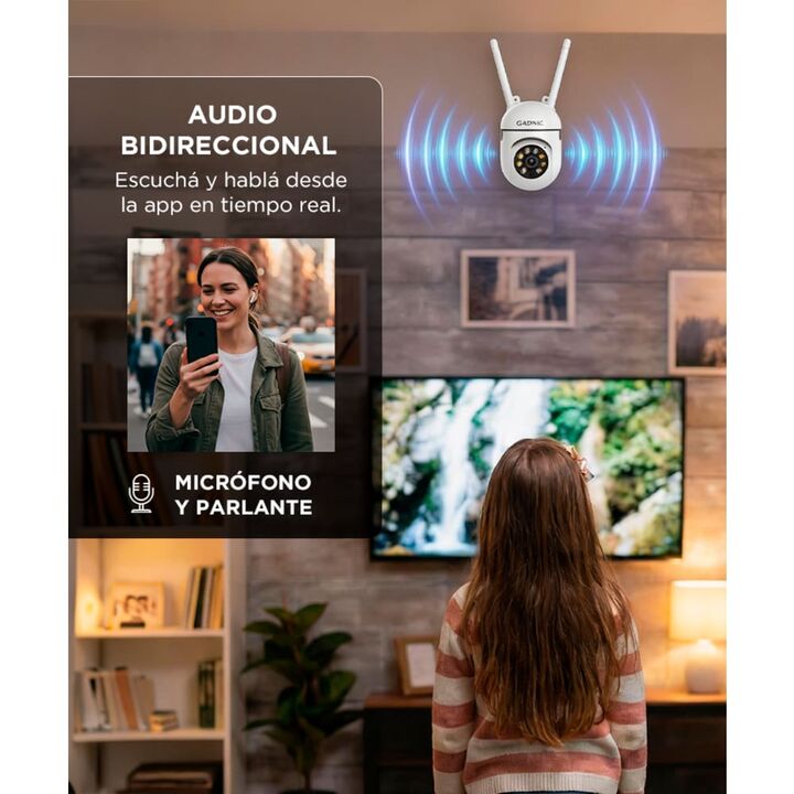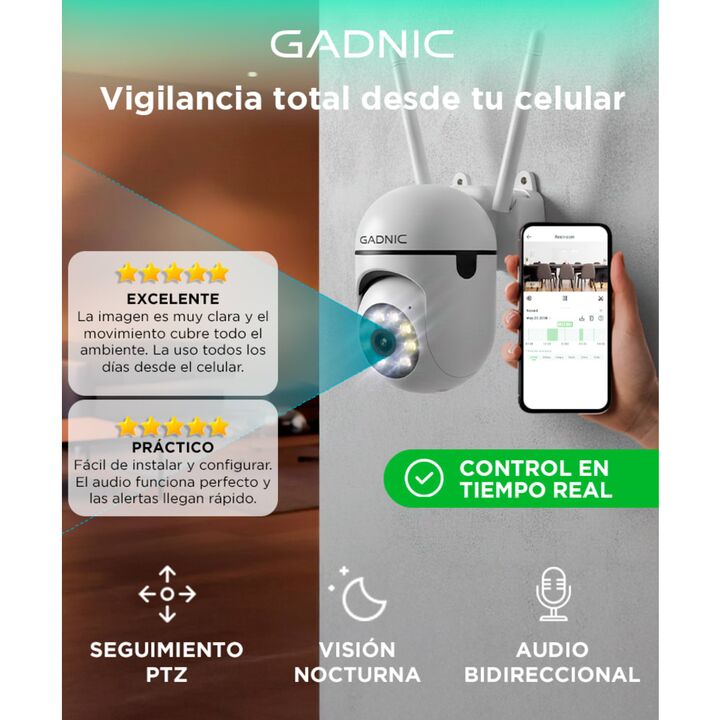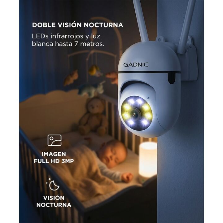 Vigilancia Full HD siempre activa Controlá tu hogar o negocio con la cámara de seguridad WiFi Gadnic SX19, diseñada para ofrecer tranquilidad las 24 horas. Gracias a su calidad de imagen 3MP Full HD y visión nocturna dual, podés ver cada detalle con nitidez, incluso en completa oscuridad. Doble ilum...