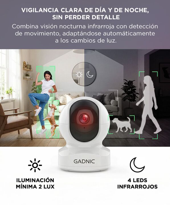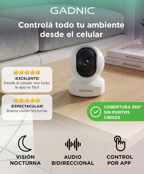 Cobertura total del ambiente con giro motorizado: La cámara de seguridad Gadnic SX9-Pro permite rotación horizontal y vertical controlada desde la app, ideal para vigilar espacios interiores amplios sin puntos ciegos. Imagen 3MP 1296p para mayor claridad: Capturá video en resolución 2304×1296 que fa...