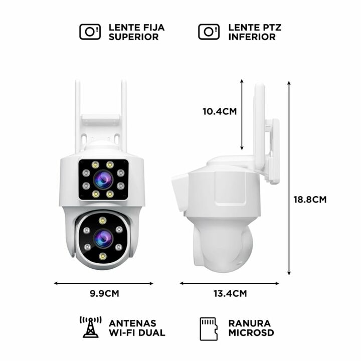 Monitoreo inteligente con doble lente: Visualizá más áreas en simultáneo gracias a su sistema de cámara dual (fija + PTZ). Evitá puntos ciegos y controlá toda la escena desde una sola app. Seguimiento automático con detección humana: La cámara identifica movimiento humano y sigue su trayectoria de f...