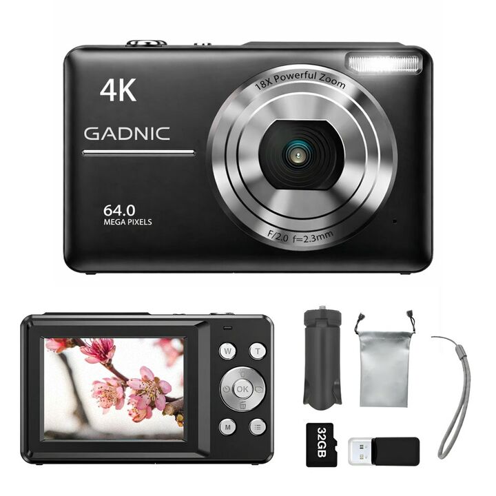 Calidad de imagen y video para capturar cada momento: La cámara digital Gadnic permite sacar fotos de alta resolución de hasta 64 MP y grabar videos en calidad 4K, logrando imágenes claras y definidas para uso diario, viajes o tareas escolares. Su sensor CMOS ayuda a obtener mejores resultados en di...