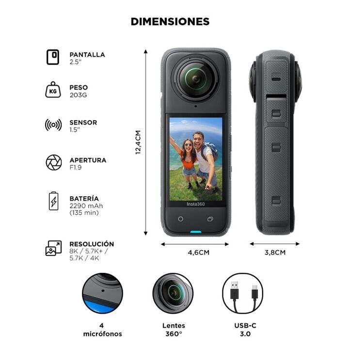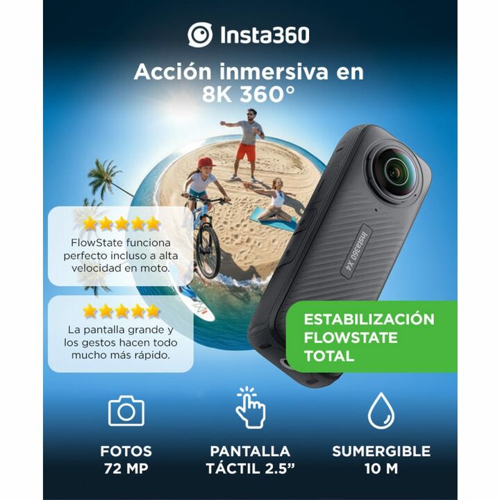 La nueva cámara Insta360 X4 lleva tus capturas a un nivel superior con un sensor de 1/2 y una apertura F1.9, ofreciendo una calidad de imagen excepcional en cada disparo. Graba en 8K a 360° o en 4K en modo lente única, con opciones avanzadas como HDR, Timelapse y Bullet Time. Con una resistencia al ...