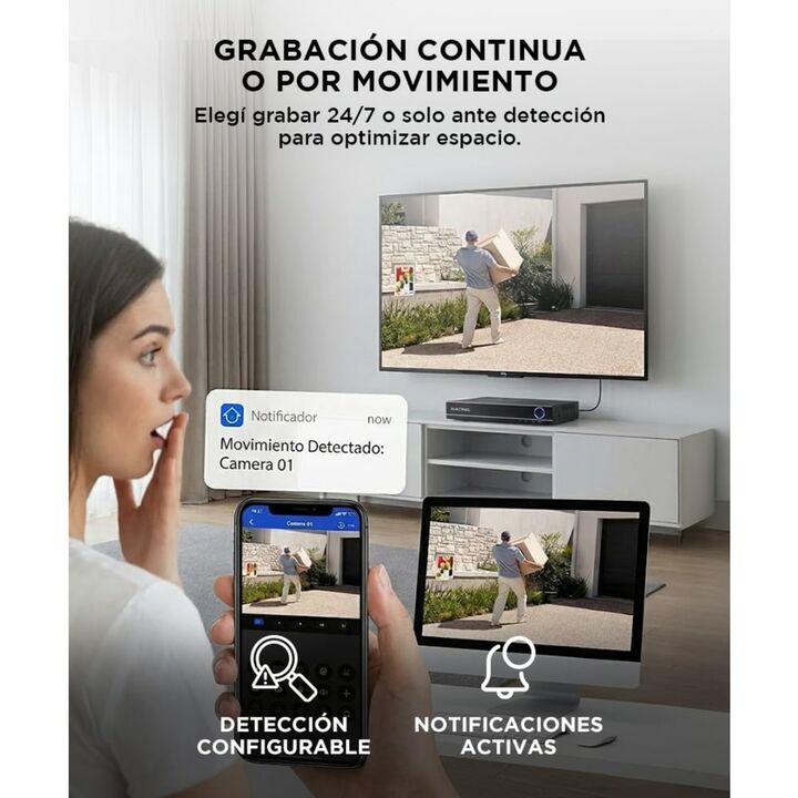 Con este kit de cámaras de seguridad vas a poder estar tranquilo, sabiendo que tu casa está segura. Seguridad al alcance de tu mano: Visualizá tus cámaras desde cualquier lugar bajándote la app en tu celular, computadora o tablet y controlá todos los movimientos. Gracias a la resolución HD de las cá...