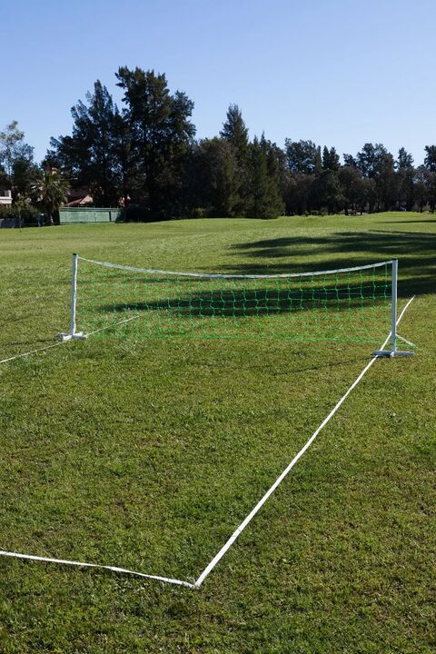 Medida de la red 3 m x 80 cm.Postes de cao pintado epoxi con base que posibilita juego en csped y cemento. Incluye estuche.-Imagen ilustrativa