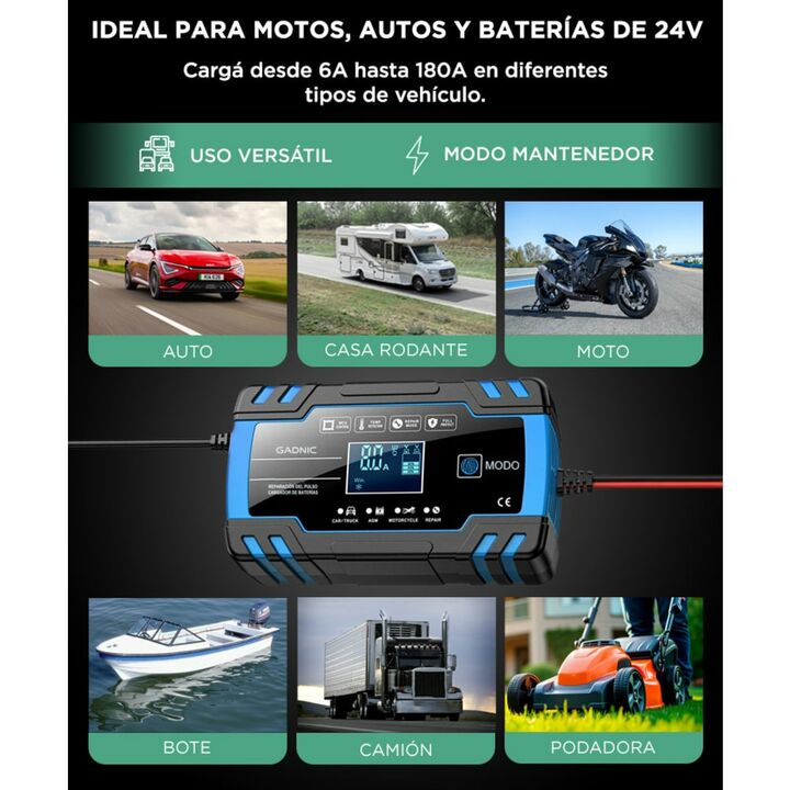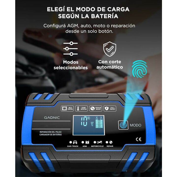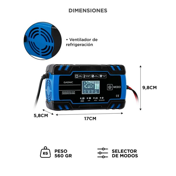 Presentamos el cargador de batería automático inteligente Gadnic, la herramienta esencial para mantener tus baterías siempre en óptimas condiciones. Este innovador dispositivo, con una eficiencia superior al 85%, está diseñado para ofrecer una carga segura, eficiente y completamente automática. Equi...
