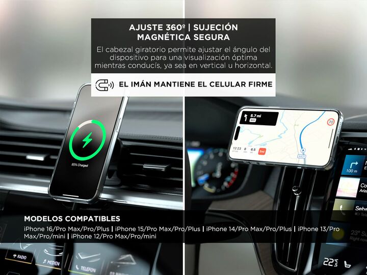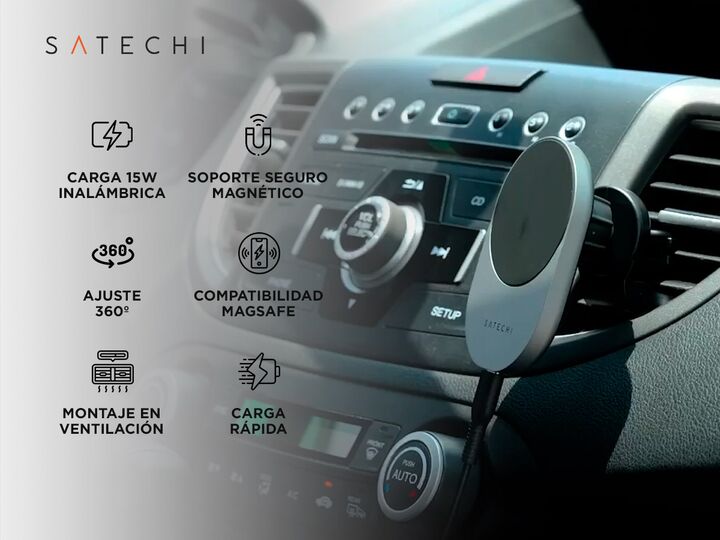 El cargador inalámbrico para auto Satechi Qi2 combina diseño compacto y alto rendimiento para mantener tu celular siempre cargado mientras manejás. Con tecnología de carga rápida de 15W y compatibilidad con MagSafe, asegura una conexión eficiente y sin interrupciones. Su soporte magnético firme mant...