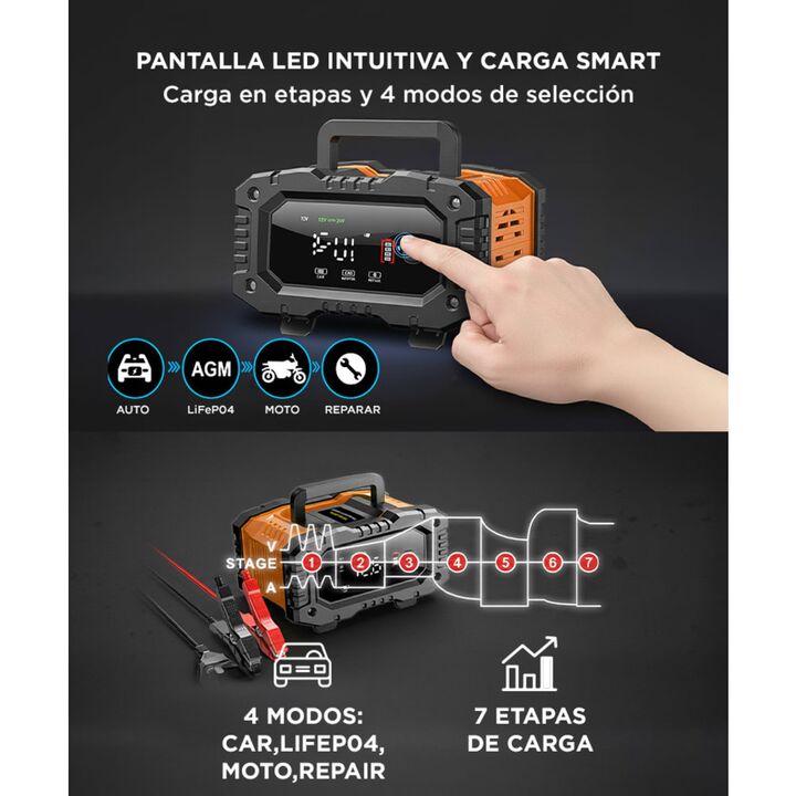 Mantené todas tus baterías al 100% con el nuevo Gadnic CBAT-Armor. Compatible con 12V y 24V, este cargador se adapta a múltiples tipos de batería: AGM, GEL, LiFePO4, EFB, entre otras. Ideal para autos, motos y más. Su sistema de carga inteligente de 7 etapas garantiza una carga segura, eficiente y p...