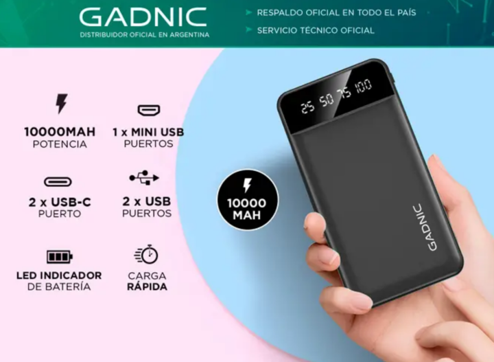 ¡GADNIC presenta su última generación de Cargadores Portátiles ! El Power Bank K42 ofrece una capacidad de carga de 10.000mAh de alta capacidad a través de dos puertos USB. Cargue su smartphone o tablet de forma rápida y segura. El Cargador portatil K42 viene con una enorme capacidad de carga de 10....