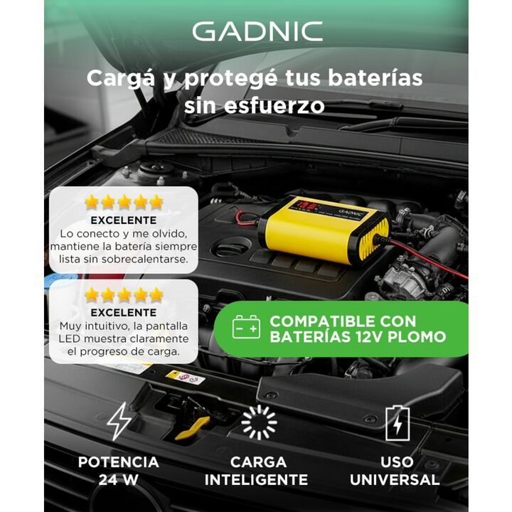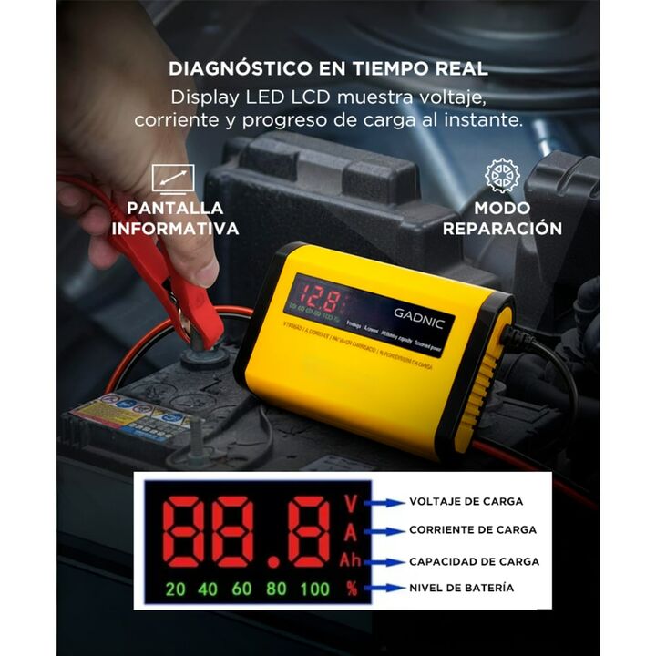 Mantené tus baterías en óptimas condiciones con el Cargador de Batería Inteligente Gadnic CBAT-Easy. Su tecnología de carga inteligente ajusta automáticamente los parámetros para una carga eficiente y segura. La pantalla LCD te brinda información clara y precisa en tiempo real. Con su modo de repara...