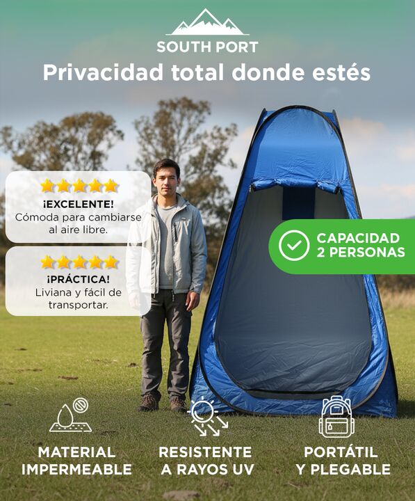 Privacidad total en cualquier entorno: La carpa baño vestidor Gadnic está fabricada con tela totalmente opaca, ideal para cambiarte, ducharte o usar como baño portátil sin transparencias. Brinda tranquilidad incluso a plena luz del día. Sistema autoarmable para uso inmediato: Su estructura se despli...