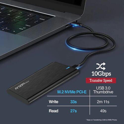 Carcasa Argomtech SSD PCI-E NVME M.2 tipo C ARG-AC-1038 - A00581 Coloque su disco duro SSD PCI-E con clave M interna en este ligero estuche de aluminio con interfaz tipo C y transfórmela en una solución de disco duro externo ultrarrápido portátil con velocidades de transferencia de datos de hasta 10...