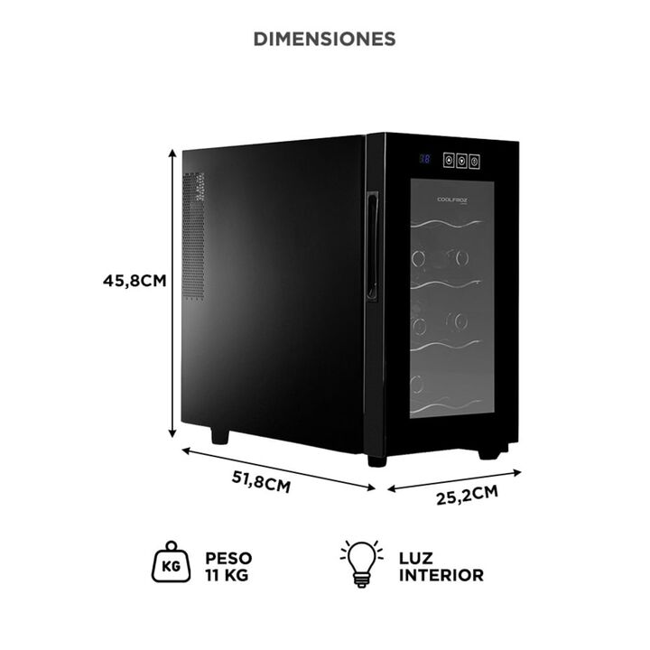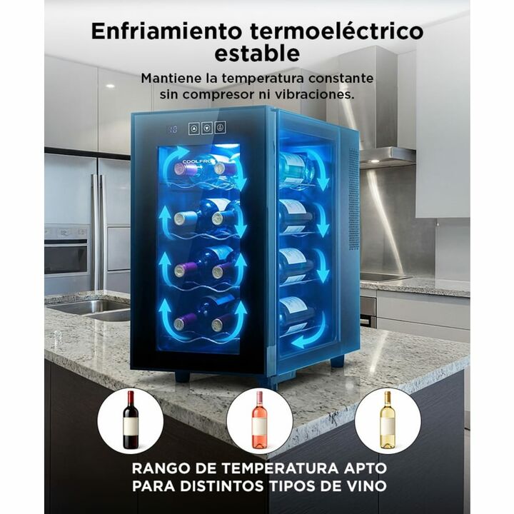 Para disfrutar solo o acompañado, la cava de vinos Coolfroz By Gadnic WCTE0008 estará presente en tus momentos importantes. Estiba botellas en este producto sofisticado, que refrigera y conserva la calidad. Comodidad y estilo La capacidad de almacenamiento de 8 botellas, hace que esta cava sea ideal...