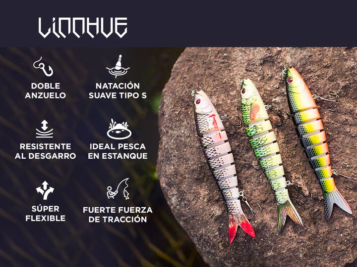 ¡Nuevo cebo de pesca Linnhue! Este cebo de pesca simula un pez en 3d. Diseñado con doble anillo dividido plano, fortalece la fuerza del plano y el el efecto anticorrosión es excelente. Su tejido especial fuerte fuerza de tracción, siendo más fácil para hacer frente a los gigantes, es súper flexible ...