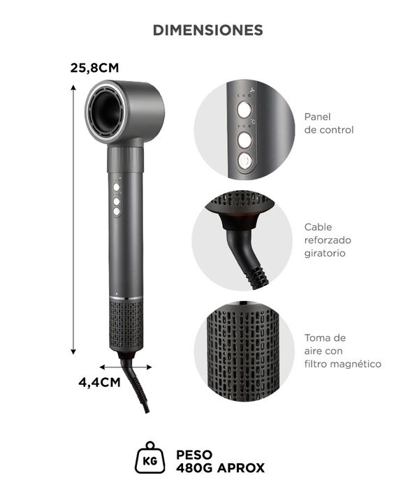 Secado rápido con motor de 110.000 RPM: La potencia de su motor BLDC permite un flujo de aire constante para resultados más ágiles y efectivos. Ajustes personalizados de temperatura y velocidad: Con 4 niveles de calor y 3 velocidades, se adapta a todo tipo de cabello y estilos. Tecnología iónica par...