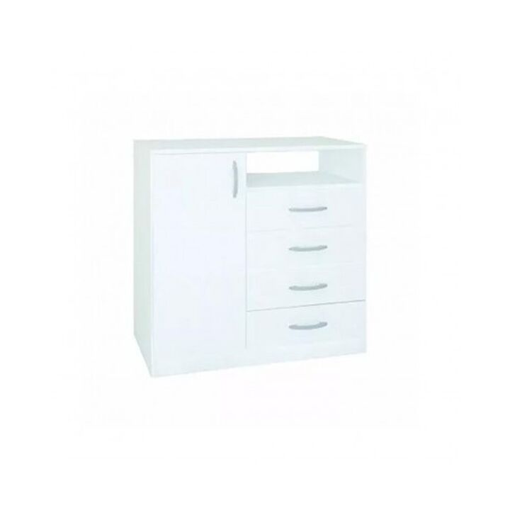 Chiffonier 4 Cajones Y 1 Puerta - Blanco Veta ANCHO 1.00m ALTURA 1.02m PROF 0.47m Una cómoda realmente funcional, con armario de mediana altura con 3 estantes regulables, 4 amplios cajones con correderas metálicas y 1 estante superior. Es uno de los muebles que no puede faltar en tu habitación. Adem...