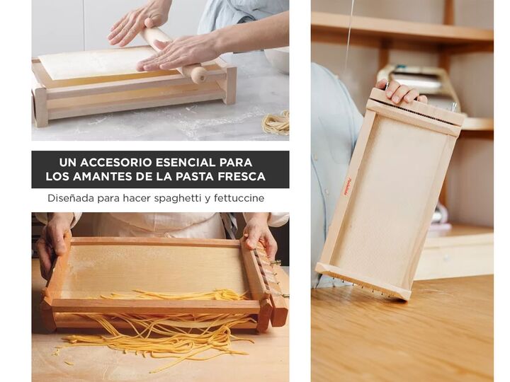 La Pastalinda Chitarra es un accesorio esencial para los amantes de la pasta fresca. Diseñada para hacer spaghetti y fettuccine de forma casera, esta chitarra combina funcionalidad y simplicidad para brindar una experiencia auténtica de cocina italiana. Especificaciones Estructura de madera de haya ...
