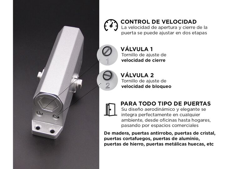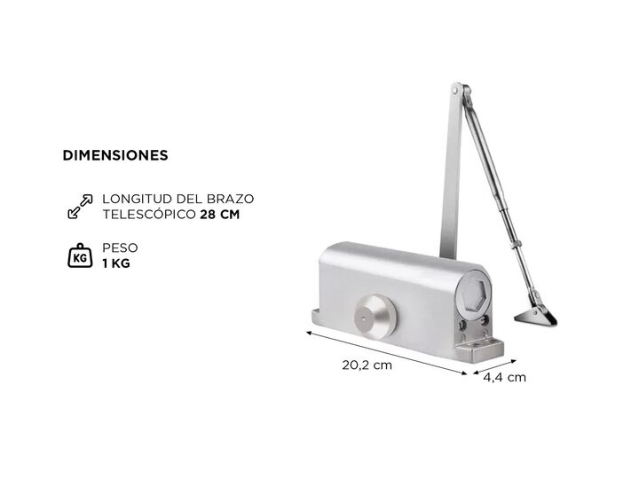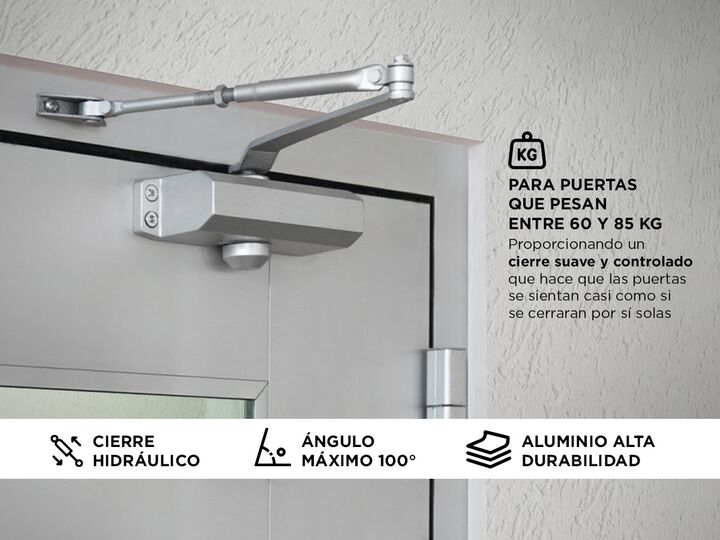 El cierre hidráulico Gadnic CIEPUE02 ofrece un cierre suave y controlado para puertas de 60 a 85 kg. Fabricado en aluminio de alta resistencia, cuenta con brazo telescópico de 28 cm y ajuste hidráulico de velocidad inicial y final, otorgando una experiencia silenciosa y segura. Su diseño estilizado ...