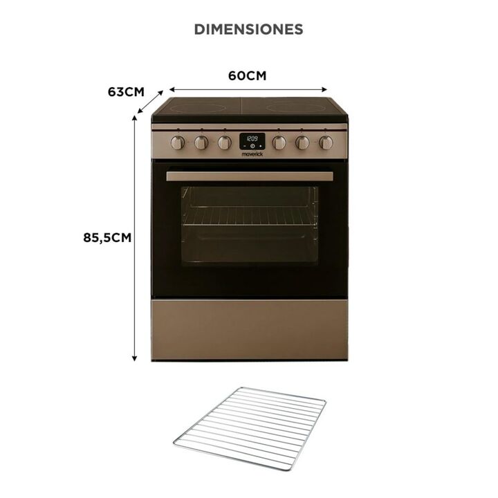 Cocción profesional todos los días: La cocina eléctrica Maverick 60 cm combina un diseño moderno con un rendimiento superior. Su anafe vitrocerámico y su horno con convección permiten lograr resultados parejos y consistentes en cada preparación, desde recetas simples hasta platos gourmet. Anafe vitr...