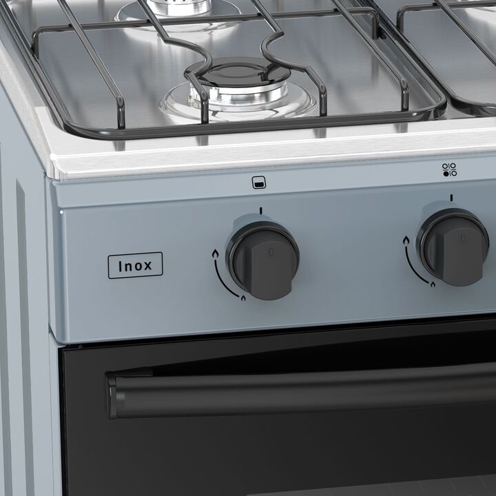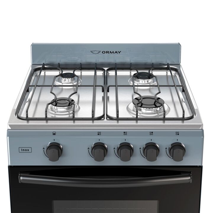 Principales características: Multigás Plancha de acero inoxidable Horno Easy to Clean Eficiencia horno A+ Eficiencia hornallas A Válvula de Seg. en horno y hornallas Rejillas esmaltadas divididas Puerta parilla DIMENSIONES: Ancho: 57,60 cm. Alto: 85,50 cm. Profundidad: 54,50cm.