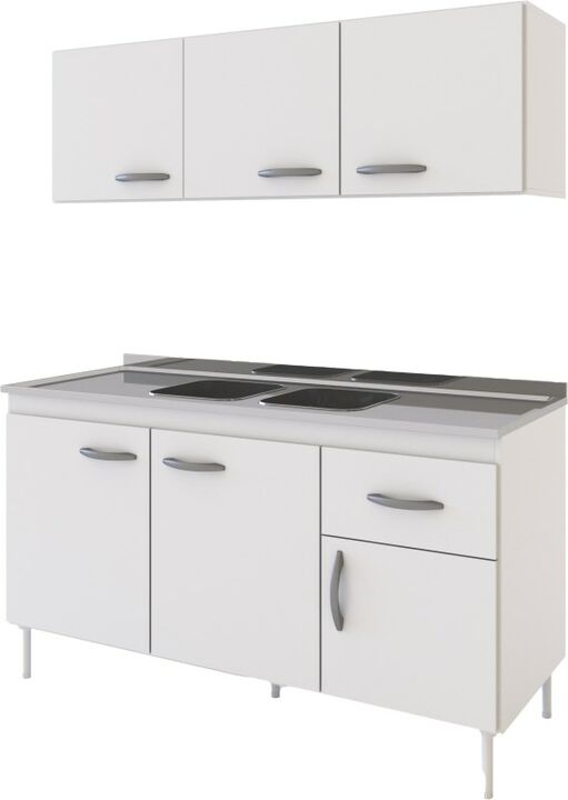 Combo Cocina New 140 Blanco Delos -Combo De Cocina 140 Cm En Melamina De 15 Mm -Alacena 3 Puertas -Bajo Mesada 3 Puertas + 1 Cajon -Mesada De Acero Inoxidable Con Bacha Doble Central. Escurridor Y Respaldo Antiderrame -Medidas Alacena (Profxanxal) 32X140X44Cm -Medidas Bajo Mesada (Profxanxal) 47X140...