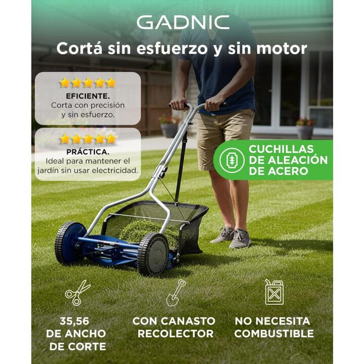¡NUEVA CORTADORA DE CESPED MANUAL HELICOIDAL GADNIC! Manera limpia y silenciosa de mantener su césped sin necesidad de utilizar gasolina ni aceite. Es amigable con el medio ambiente y no requiere mantenimiento. Posee cuchillas muy fáciles de afilar que garantizan la durabilidad del producto y su opt...