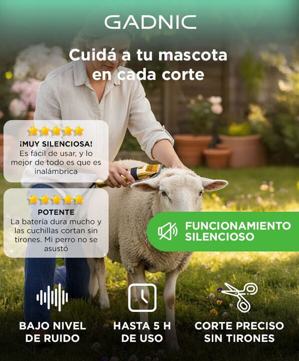 Corte silencioso que reduce el estrés en mascotas sensibles: La cortadora Gadnic CORTPE75 opera con bajo nivel de ruido y vibración, lo que permite realizar el corte sin generar miedo ni incomodidad. Es una solución adecuada para perros y gatos que reaccionan al sonido, facilitando sesiones de cuida...