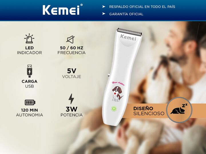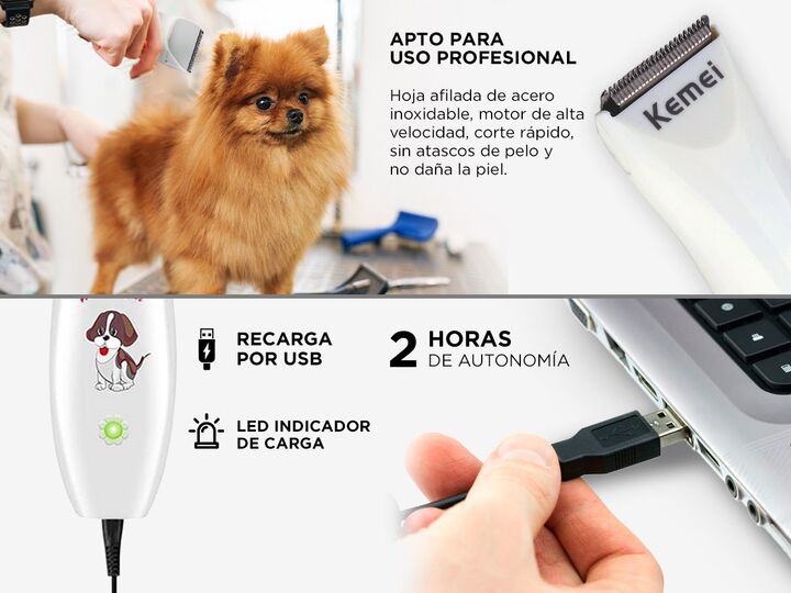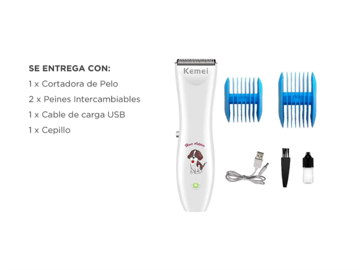 ¡Nueva Cortadora de Pelo Para Perros Kemei Km-1051! La Cortadora de Pelos para perros recargable es ideal para todo tipo de pelajes. Diseño Ergonomico e inalámbrico para un uso mas fácil. El kit de aseo para mascotas está equipado con un cable de carga USB, 1 cepillo y dos peines Intercambiables . C...