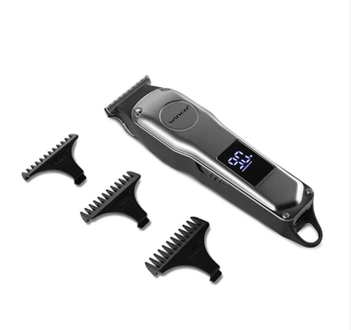 Cuchilla de acero inoxidable de gran precisin y calidad.5 peines para regular la longitud del cabello y el ngulo del corte.Visor digital de autonomaRecargable por USB.