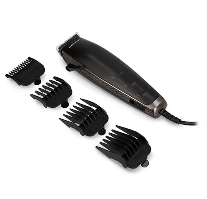 Cortadora de cabello profesionalFilos de titanio4 posiciones de corteForma ergonmicaCable reforzadoPotente motorProtege la fibra natural del cabelloReduce el frizz y la estticaFcil de usarAccesorios peines tijera cepillo de limpieza y aceite lubricante.Medidas producto18246cm