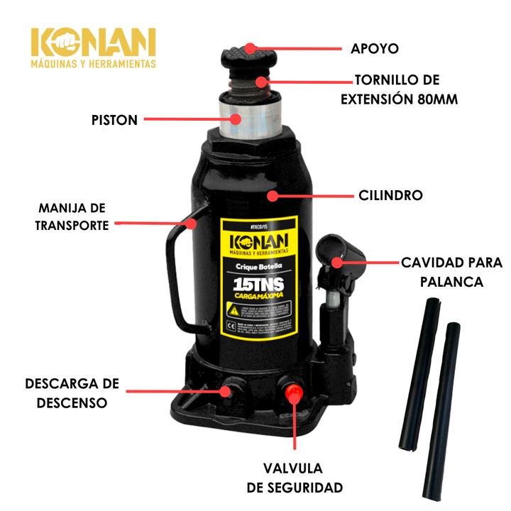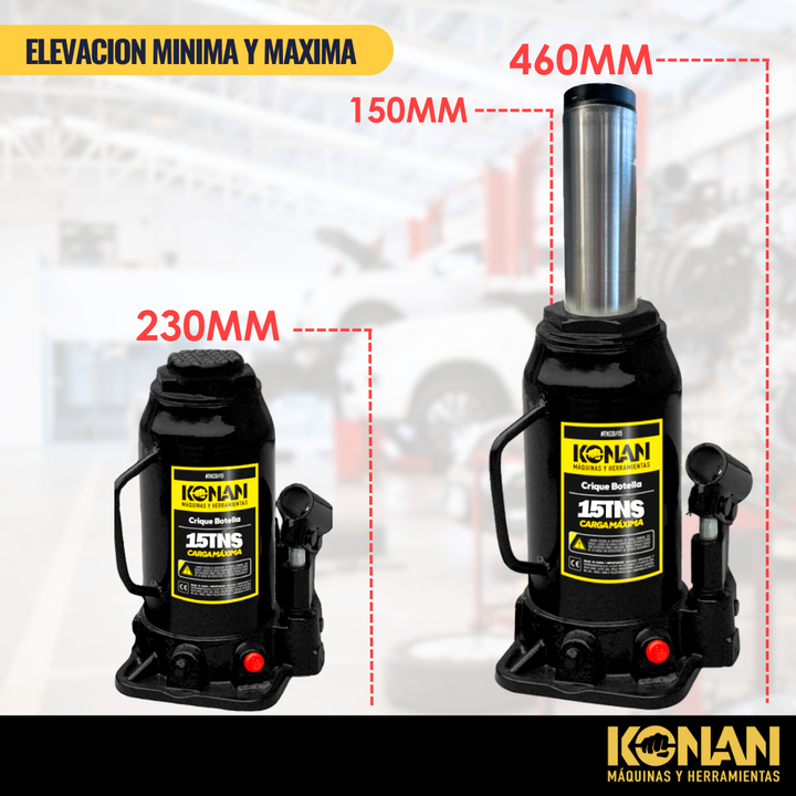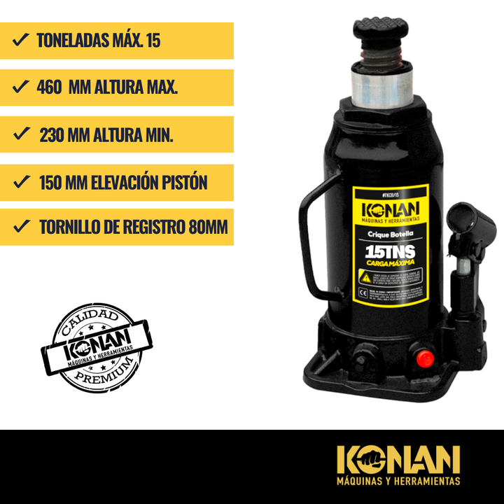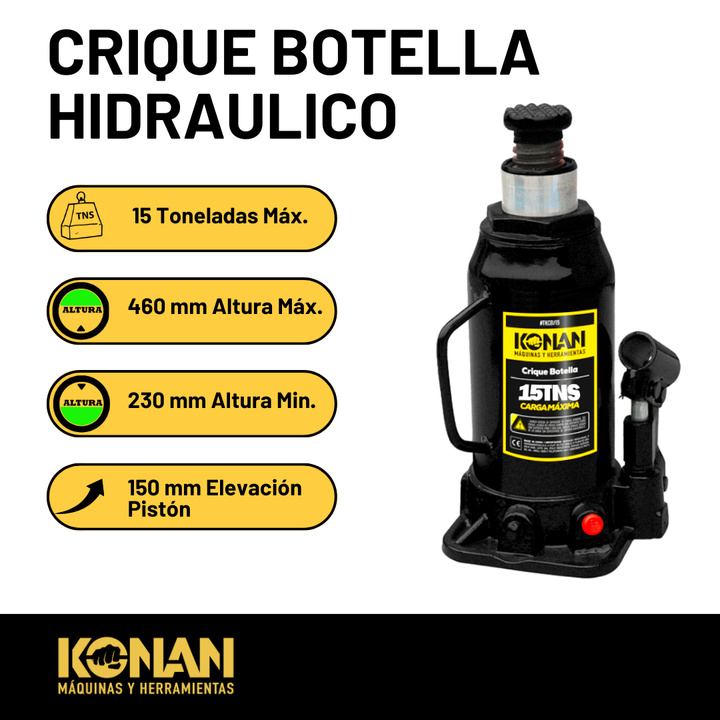 El Crique Botella Reforzado Konan de 15 toneladas es una herramienta hidráulica de alto rendimiento y estructura robusta, diseñada para elevar cargas pesadas con seguridad, precisión y estabilidad. Su diseño tipo “botella” permite aprovechar al máximo la fu...