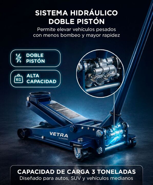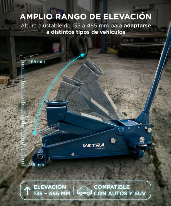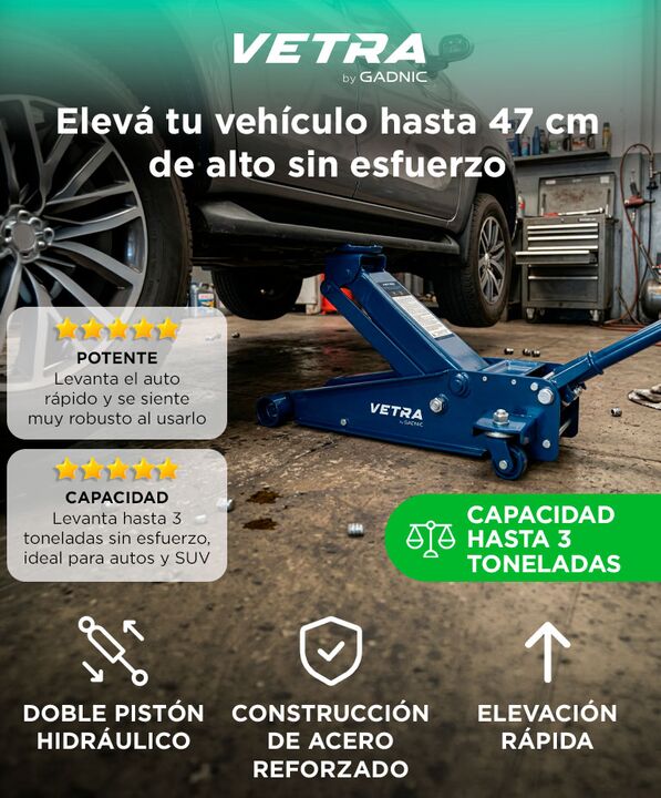 Elevación segura para autos, SUV y vehículos de hasta 3 toneladas: El crique gato hidráulico CRIQUR3T está diseñado para levantar vehículos livianos y medianos con estabilidad y seguridad. Su capacidad de carga de hasta 3 toneladas permite realizar tareas como cambio de ruedas, inspecciones o manten...