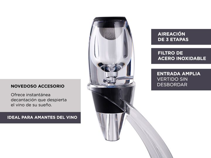 ¡Gadnic presenta su nueva linea de Descantadores de vinos Profesional! Aeración suave: el vino viaja mas rápido a través de este dispositivo especialmente diseñado con una aireación de 3 etapas, dando lugar a burbujas mas finas y aireación mas suave en comparación con cualquier otro tipo de aireador...