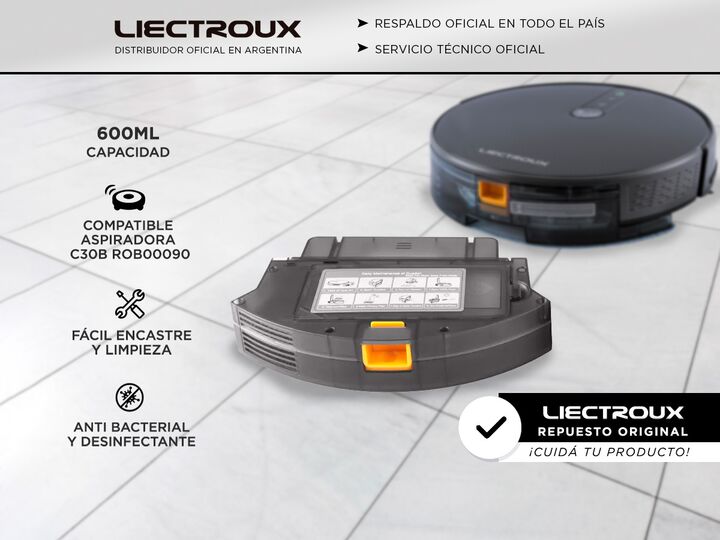 Optimiza el rendimiento de tu Aspiradora Robot Liectroux C30B con el Depósito de Polvo de Repuesto. Con una capacidad de 600ml, este depósito es ideal para mantener tus pisos completamente limpios y libres de polvo en cada ciclo de limpieza. Diseñado específicamente para el modelo ROB00090, es un re...