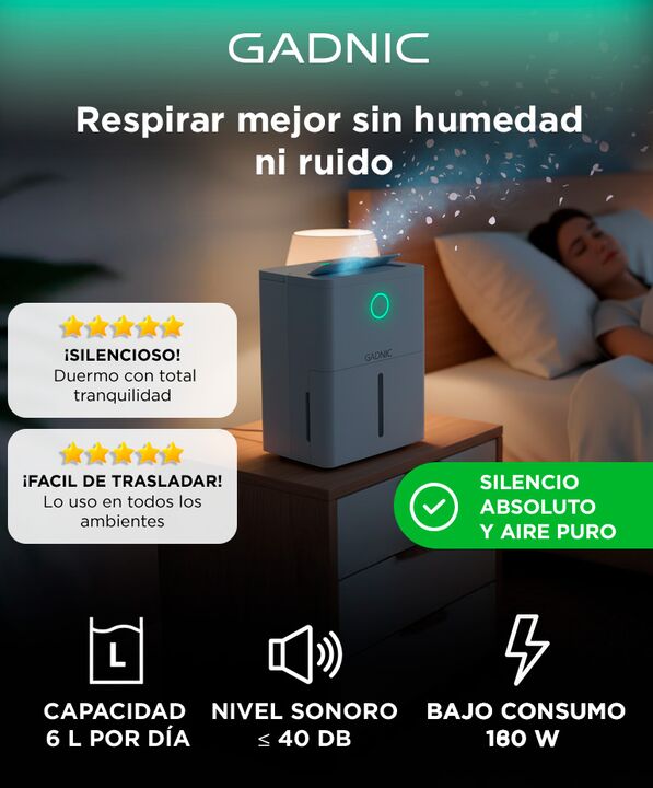 Control eficiente de la humedad: Este deshumidificador permite reducir la humedad ambiental de forma constante y segura en espacios medianos. Su capacidad de hasta 6 litros diarios ayuda a prevenir moho olores y condensación. Funciona de manera estable en distintos climas manteniendo el ambiente mas...