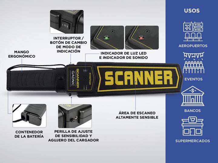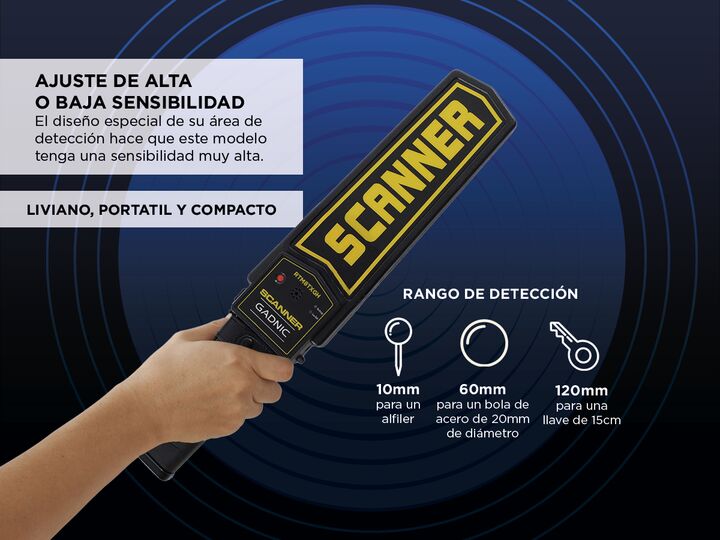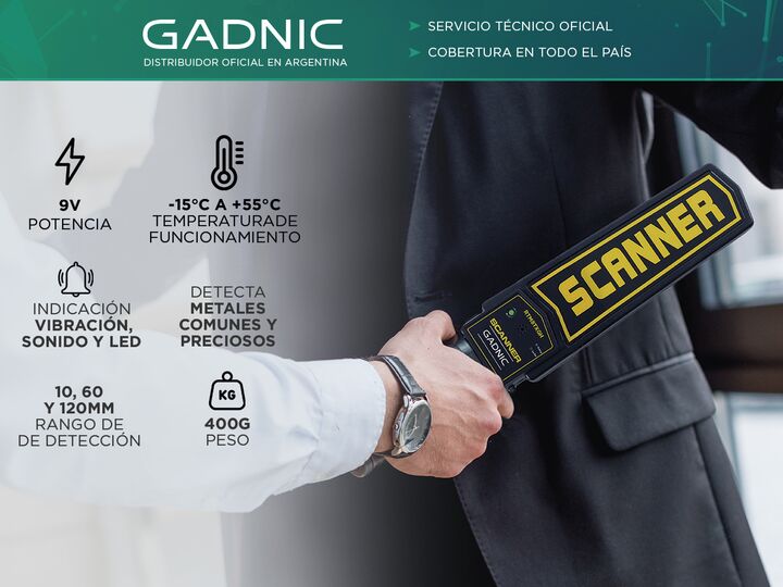 Nuevo Detector de metales portátil Gadnic El RTM8TXGH es un detector de metales de alto rendimiento diseñado para cumplir con los requisitos exactos de la industria de la seguridad. El diseño especial de su área de detección hace que este modelo tenga una sensibilidad muy alta. Los usos típicos incl...
