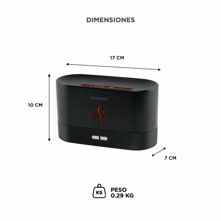 ¡Nuevo Difusor Humidificador Gadnic Con Efecto Llama! Este difusor de aceite esencial es perfecto para aromaterapia ultrasónico, toma la luz y la niebla para crear un efecto de llama realista que se puede ajustar entre una llama suave y una llama feroz. Añade 3-5 gotas de tus aceites esenciales favo...