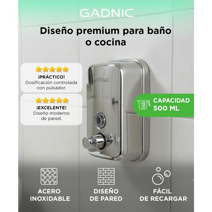 Gadnic presenta el nuevo dispenser de jabon de pared Descubrí la combinación perfecta de calidad, durabilidad y estilo con el Dispenser de Jabón Metálico JABMES06. Diseñado para ofrecer una solución moderna y eficiente para la dispensación de jabón, este elegante dispensador de pared se destaca por ...