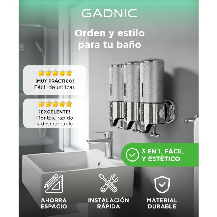 Nuevo Dispenser de Jabón Con Dosificador By Gadnic Este dispenser manual es ideal para quienes buscan ordenar y mejorar la estetica de su baño, en un solo contenedor podrás tener al alcance todo lo que necesitas, eliminando de tu baño envases y mejorando tu comodidad Es amurable y fácil de instalar ...