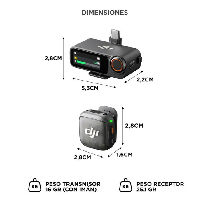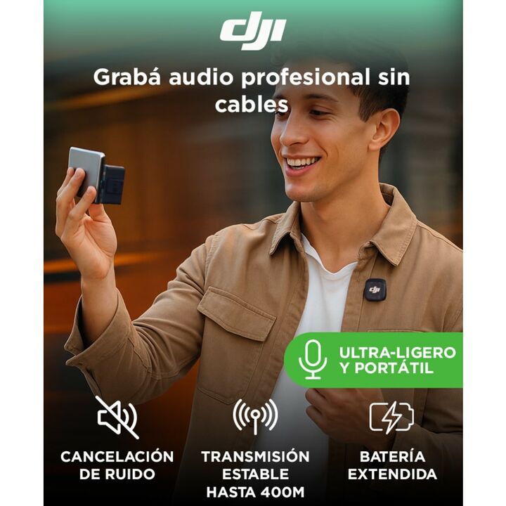 Diseño ultraligero y portátil: Con solo 16 gramos por transmisor, el DJI Mic 3 es casi imperceptible al usarlo. Su clip giratorio y montaje magnético permiten colocarlo de manera rápida y segura en cualquier prenda, ideal para entrevistas, vlogs o grabaciones en movimiento. Capacidad multicanal con ...