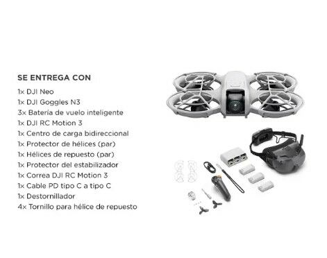 El DJI Neo lleva la experiencia de vuelo a otro nivel con su tecnología avanzada y diseño inmersivo. Equipado con DJI Goggles N3 y el DJI RC Motion 3, ofrece un control intuitivo y preciso para una sensación de vuelo única. Su cámara de alto rendimiento captura imágenes y videos con una estabilidad ...