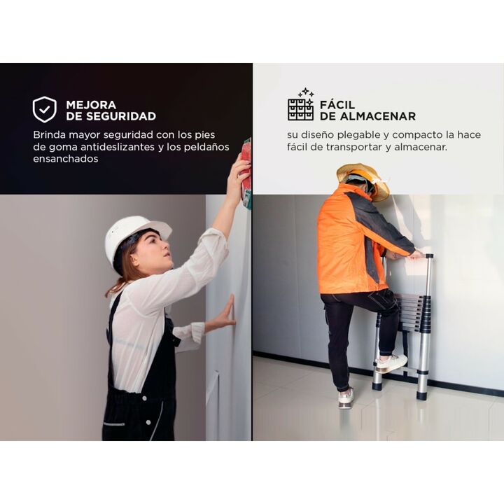 ¡Hace frente a tus proyectos con total confianza con nuestra escalera telescópica de alta calidad! Con características diseñadas para tu seguridad y comodidad, esta escalera es una herramienta indispensable para cualquier tarea en el hogar o en exteriores. Con sus pies de goma antideslizantes y peld...