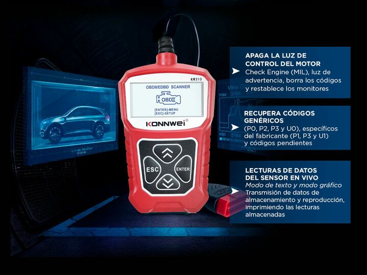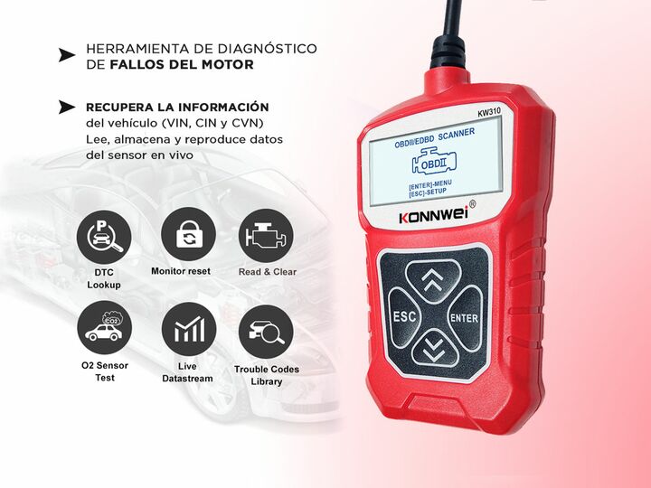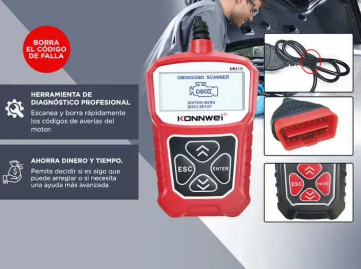 Descubre el escáner de diagnóstico KONNWEI KW910, la herramienta esencial para cualquier propietario de vehículo. Este dispositivo avanzado permite un diagnóstico preciso de fallos del motor, facilitando la identificación rápida de problemas. Con su capacidad para determinar la causa de la luz del m...