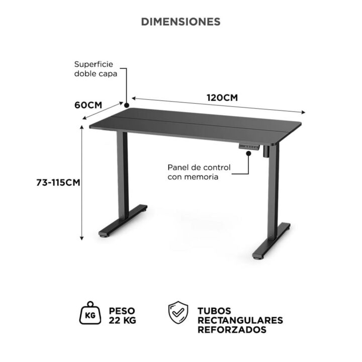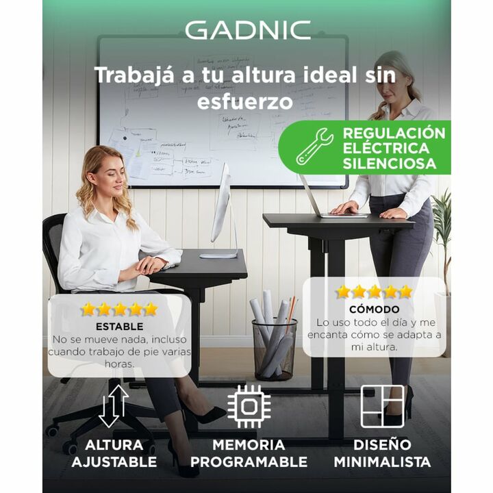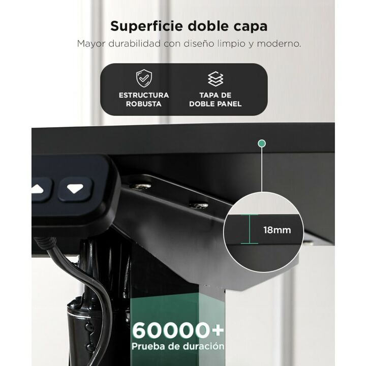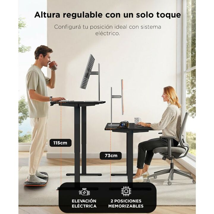 Altura regulable para mayor comodidad: Adaptá la posición de trabajo a tu altura con solo tocar un botón. Ideal para jornadas largas. Panel de control con memoria integrada: Almacená hasta dos alturas personalizadas para alternar entre sentado y de pie rápidamente. Diseño robusto y moderno: Patas de...
