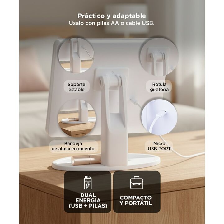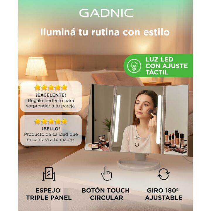 ¡Gadnic presenta su nueva linea de Espejo de maquillaje con luces LED! Este Espejo cuenta con tres tonos de luz, luz diurna / luz natural / luz cálida. Nuestro espejo de maquillaje LED triple proporciona un buen brillo para el maquillaje, un traje diferente para diferentes ocasiones. Conveniente par...