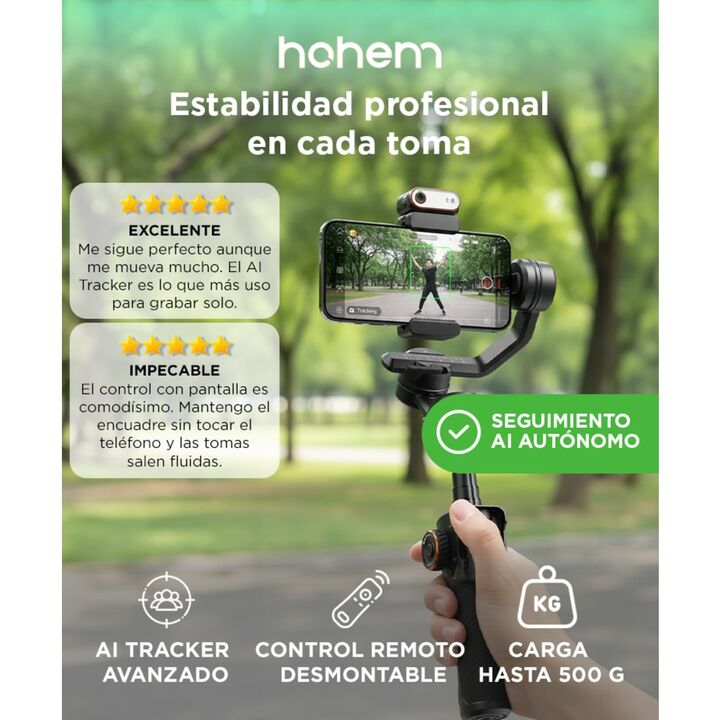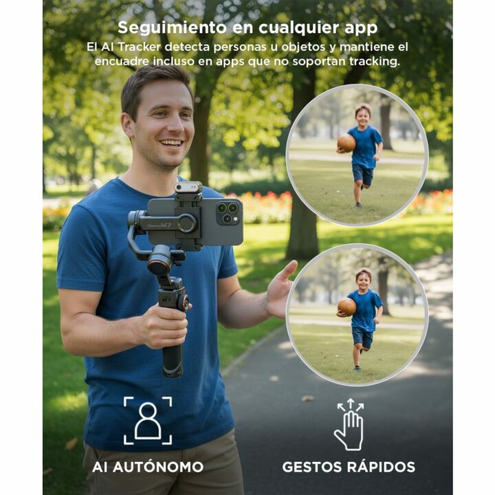 Hohem lanza el EstabilizadorIsteady M7: Seguimiento por IA avanzado: Equipado con un rastreador de IA magnético y desmontable, el iSteady M7 puede seguir de manera precisa a personas, objetos y animales, incluso cuando el sujeto se mueve fuera del encuadre. Control remoto desmontable con pantalla tá...